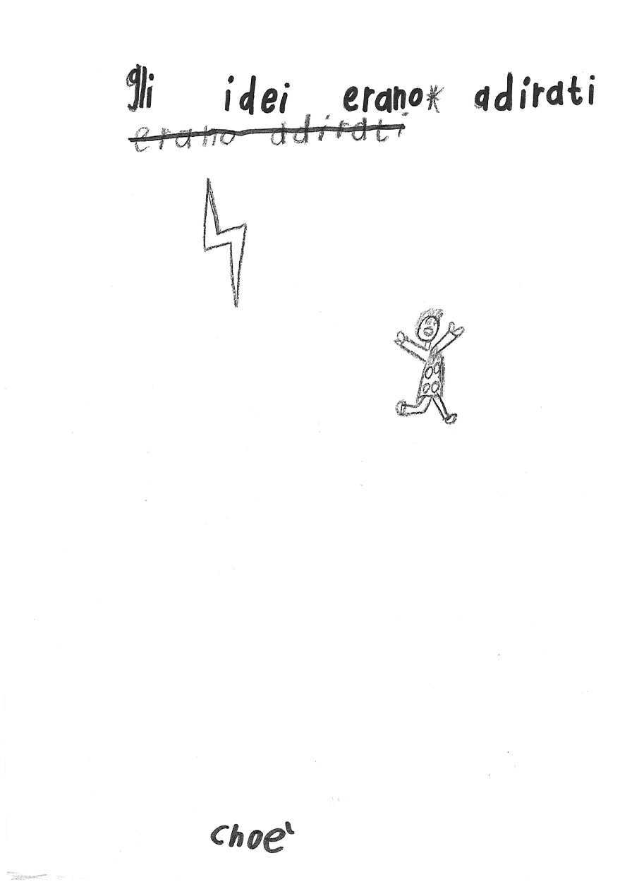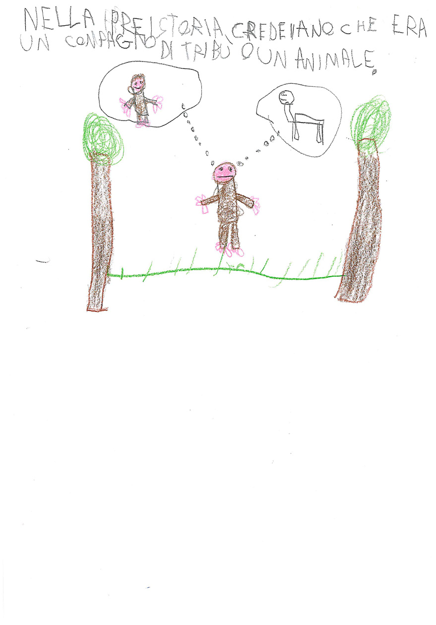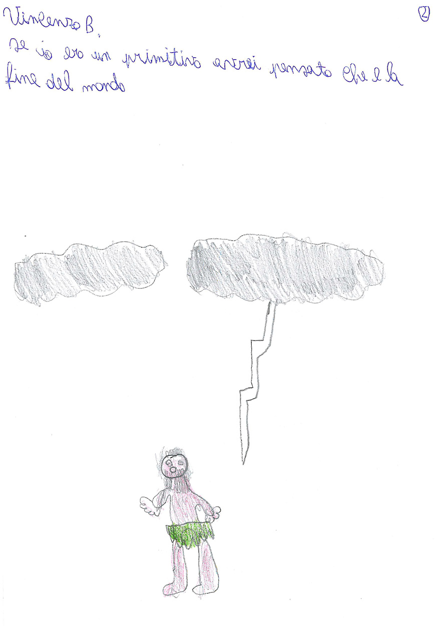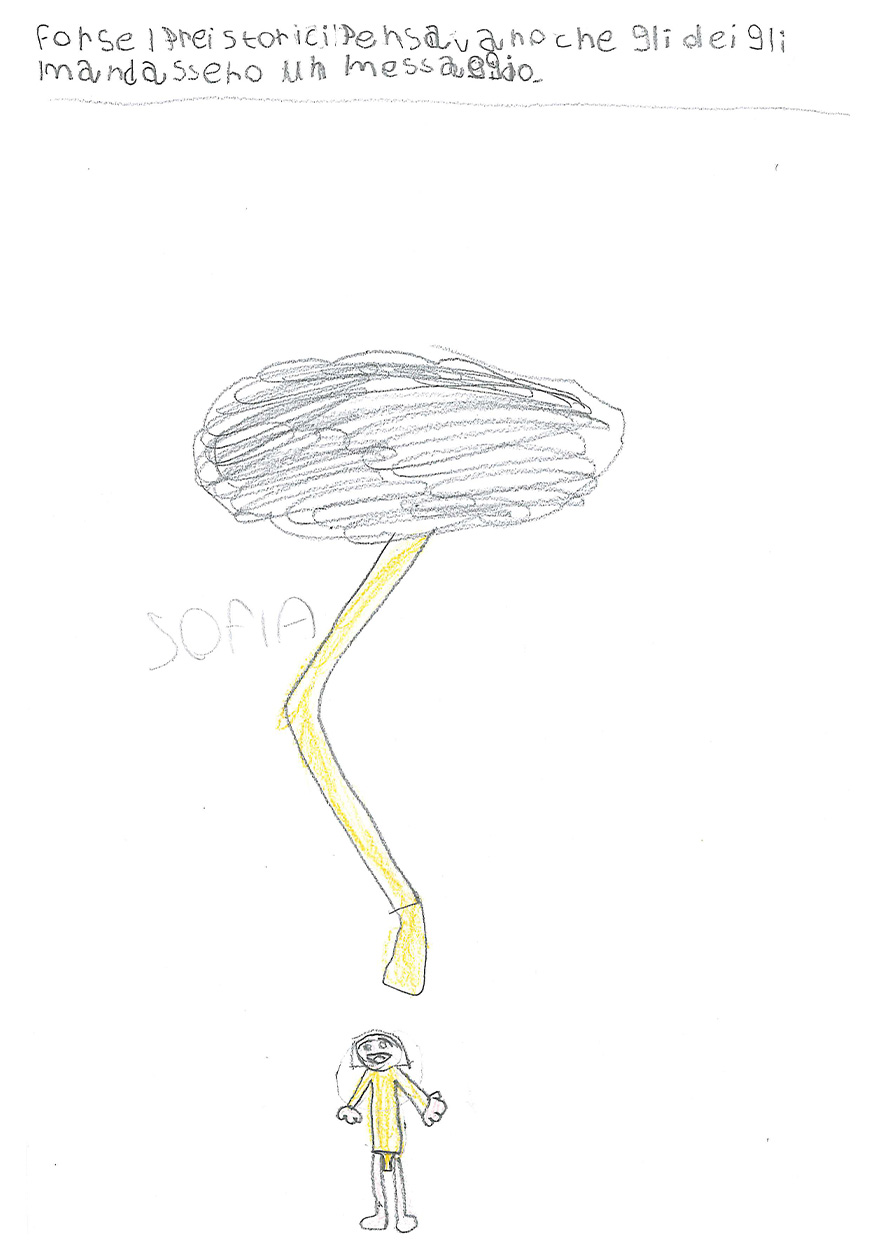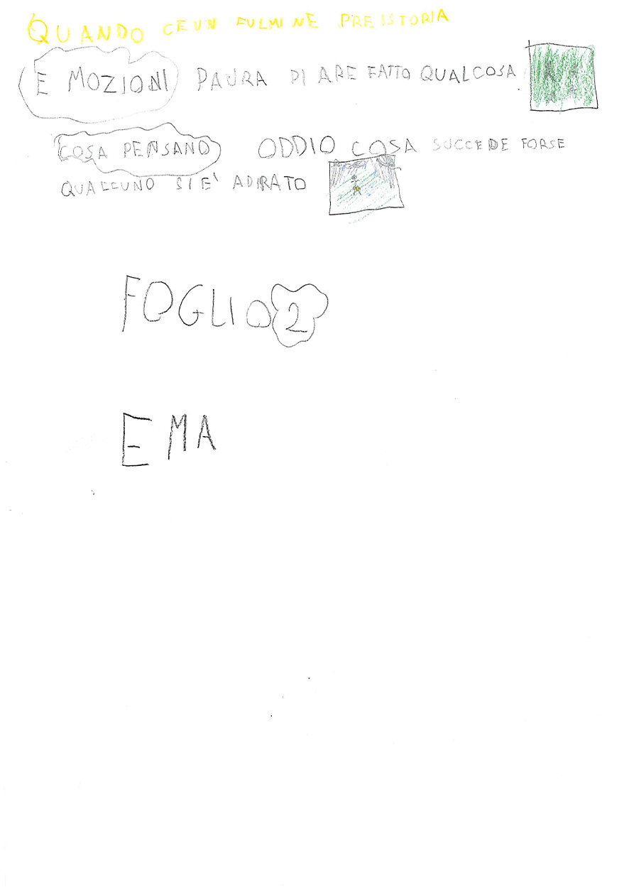 “Cosa sai del fulmine? Prova a spiegare con un disegno e un testo che cos’è il fulmine” “Immagina anche di essere un giovane Sapiens fossile che trova riparo nella sua caverna. Secondo te, cosa pensava che fosse il fulmine?”